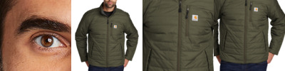 - Carhartt labels sewn on firm duck slip pocket and sherpa-lined side corner